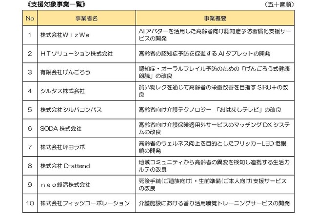 令和7年度「高齢者向け新ビジネス創出支援事業」の支援対象事業 10 件が決定しました