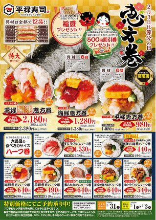 「美味しさ」と「開運祈願」、そしてお得感もお届けする平禄寿司の「恵方巻」。皆さまのご予約・ご購入をお待ちしております。