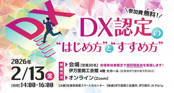 佐賀県産業スマート化センターではDX認定の取得サポートを実施しております。詳しくはお気軽にお問合せください。