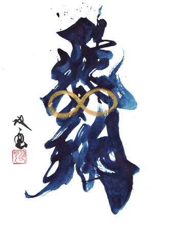 「飛翔(∞)」33.3×24.2cm 青墨・金墨・越前和紙 2025年11月