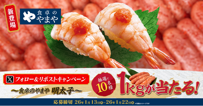 株式会社物語コーポレーション(本社:愛知県豊橋市/代表取締役社長:加藤 央之)が全国113店舗展開する『寿司・しゃぶしゃぶ ゆず庵』(以下、ゆず庵)は、新しく登場した「食卓のやまや」メニューの販売を記念して、本日より、公式Xにて、抽選で10名様に「食卓のやまや明太子」1kgが当たるプレゼントキャンペーンを開催いたします。
