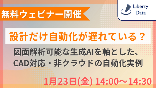 ~1月23日(金) 無料ウェビナー開催~「設計だけ自動化が遅れている?図面解析可能な生成AIを軸とした、CAD対応・非クラウドの自動化実例」