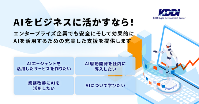 KDDIアジャイル開発センター株式会社(本社:東京都港区、代表取締役社長/CEO:木暮 圭一、以下 KAG)は、エンタープライズ企業が安全かつ効果的にAIを活用するための包括的な支援サービス群「KAGAI AGILITY Suite」の提供開始します。