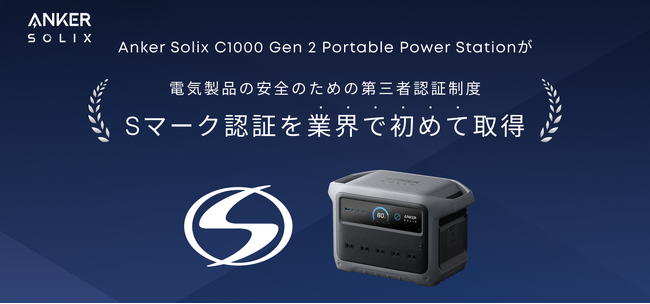 米国・日本・欧州を中心にデジタル関連製品でトップクラスの販売実績を誇るAnkerグループの日本法人、アンカー・ジャパン株式会社(本社:東京都千代田区、代表取締役CEO:猿渡 歩)は、5年連続世界No.1モバイル充電ブランド (※) の「Anker」が展開するポータブル電源シリーズAnker Solixの一部の製品において、2026年1月13日(火)にSマーク認証を取得したことをお知らせいたします。