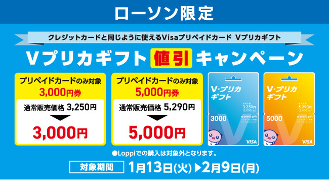 - 【ローソン限定】Vプリカギフト値引きキャンペーン01/13 19:15