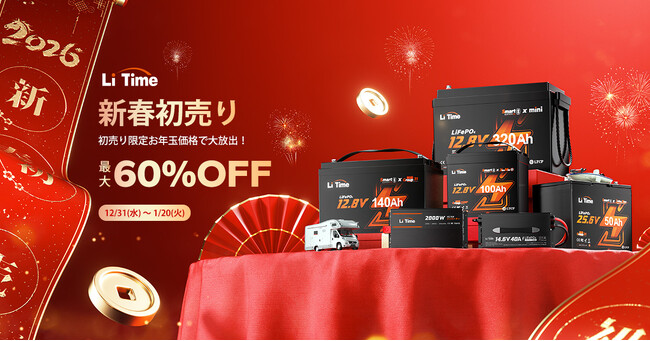 LiTime「新春初売りセール」開催中!初売り限定の最大60%OFFで人気のLiFePO4バッテリー&周辺機器を大放出