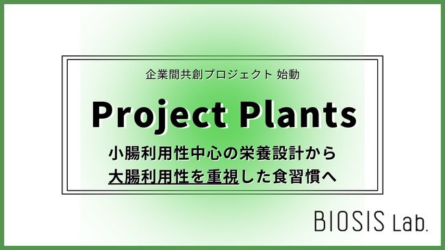 株式会社バイオシスラボ(本社:愛知県豊明市沓掛町田楽ヶ窪1-98藤田医科大学内)は、植物性食品とプレバイオティクスの価値を「大腸利用性」という新たな評価軸で再定義する企業間共創プロジェクト「Project Plants」を、2026年1月より始動する。