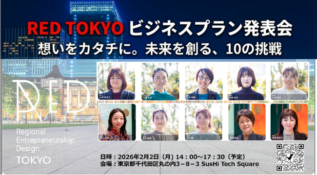株式会社パソナグループ(本社:東京都千代田区、代表取締役社長CEO 若本博隆)は、経済産業省 関東経済産業局から受託・運営する「令和7年度ユニコーン創出支援事業『GIRAFFES JAPAN』(女性アントレプレナーのための地域密着型支援事業)」の一環で、女性起業家と支援者のマッチングイベント『ビジネスプラン発表会 RED TOKYO』を、2026年2月2日(月)にTokyo Innovation Base(東京都千代田区)及びオンラインにて開催いたします。