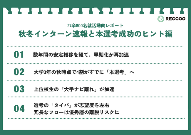 ▼【27卒800名就活動向レポート】秋冬インターン速報と本選考成功のヒント 編