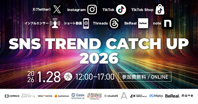 TikTokを中心としたショートムービー(短尺動画)領域で広告代理店事業・プロダクション事業を展開するstudio15株式会社(スタジオフィフティーン、本社:東京都渋谷区、代表取締役:岩佐 琢磨、以下 studio15)は、1月28日(水)12:00~開催の、株式会社コムニコが主催するオンラインカンファレンス「SNS TREND CATCH UP 2026」へ登壇いたします。