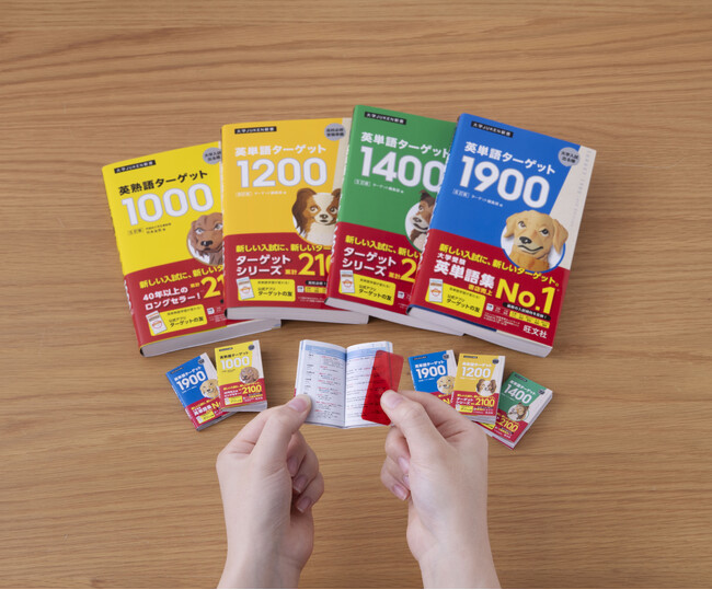 本企画は、大学受験生の必携書として長年支持をいただいている「大学受験英単語ターゲット」シリーズを、株式会社コトフルの技術により全高約5cmのミニチュアブック(豆本)として忠実に再現したものです。