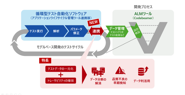 「モデルベース開発ソリューション」の「循環型テスト自動化ソフトウェア(アプリケーションライフサイクル管理ツール連携版)」の特長