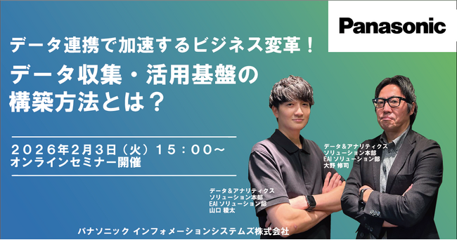 パナソニック インフォメーションシステムズ株式会社は、2026年2月3日(火)『データ連携で加速するビジネス変革!データ収集・活用基盤の構築方法とは?』セミナーを開催します。