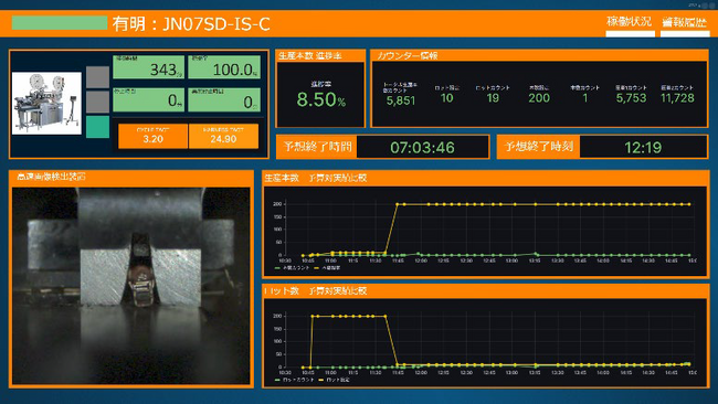 J.A.M.の両端圧着/片端圧着挿入機に、同社が開発したハイスピードカメラを搭載し、異常検出時には、常時録画されている映像データの必要部分だけサーバーに格納し、機械から送られた稼働データと同期して、PCやタブレットのWebブラウザを通じて「mcframe SIGNAL CHAIN」上で表示・分析できます。