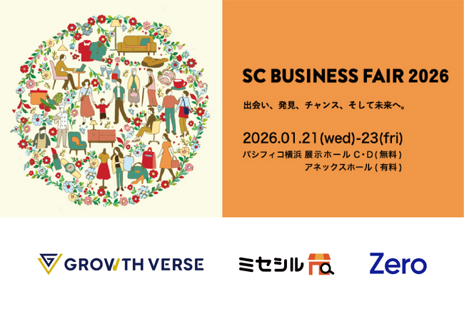 株式会社GROWTH VERSE(本社:東京都港区、代表取締役会長 兼 CTO 南野 充則、代表取締役社長 兼 CEO 渡部 知博)は、2026年1月21日(水)~23日(金)にパシフィコ横浜で開催される「SCビジネスフェア2026」に出展いたします。
