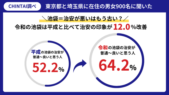 お部屋探しのリーディングカンパニー株式会社CHINTAI(本社:東京都港区 代表取締役社長 奥田倫也)は、東京都と埼玉県に在住の男女900名を対象に、「池袋の治安イメージと再開発による意識変化」に関する調査を実施しました。