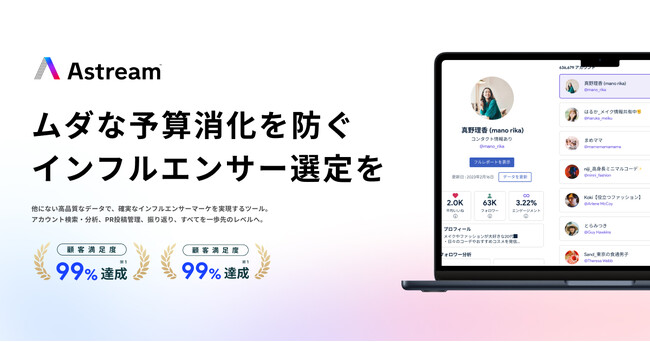 また、インフルエンサーマーケティングツール『Astream(エーストリーム)』を開発し、これまで取得不可能であったインフルエンサーのフォロワーの”興味関心”や”ブランドの好み”といったサイコグラフィック情報の分析を可能にする新時代のAIマーケティングツールの提供をしております。
