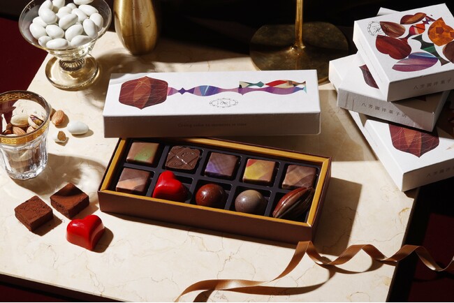 「大丸東京店」で取り扱う商品は、「八芳園洋菓子店」のショコラティエが厳選したカカオで仕立て、ひと粒ごとに趣向を凝らしたショコラを詰め合わせた「ボンボンショコラ」。定番の詰め合わせに加え、「大丸東京店」では、通常商品とは異なるラインアップで詰め合わされた6個入りと、通常の詰め合わせには含まれない2種のボンボンショコラを含む12個入りの「ボンボンショコラコンプリートBOX」を、「大丸東京店」限定の詰め合わせとして販売いたします。