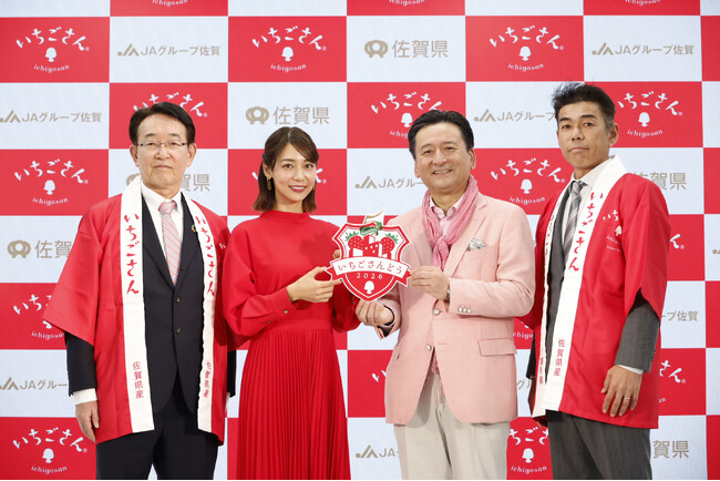 佐賀県は、 佐賀のブランドいちご「いちごさん」と表参道のカフェ・レストラン12店舗がコラボレーションし、「いちごさん」メニューを提供する「いちごさんどう2026」を、「いちごの日」の2026年1月15日(木曜日)から、3月31日(火曜日)まで約2か月間にわたり開催します。この度、1月14日(水曜日)に、相武 紗季(あいぶ さき)さんをゲストにお迎えした「いちごさんどう2026」発表会を開催しました。