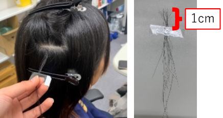 大学女子サッカー選手22名を対象に、2025年2月と3月の2回にわたって毛髪を採取し (図1)、ストレスホルモン「コルチゾール」と、社会的絆やストレス緩和に関わる「オキシトシン」の濃度を測定しました。同時に、心理アンケートでメンタルヘルスの状態も調査しました。