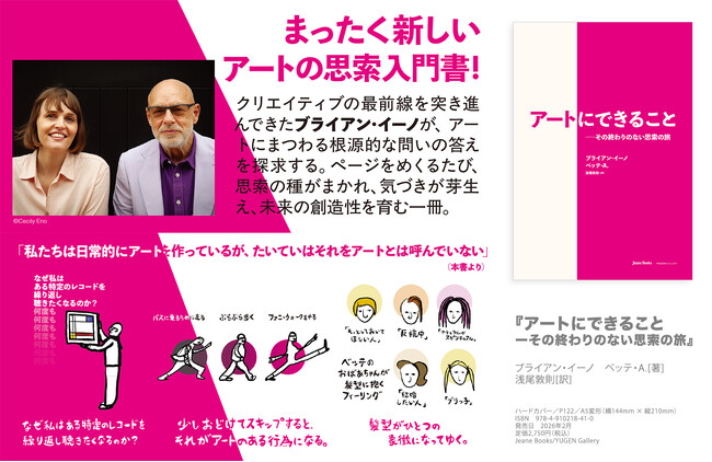 株式会社ジーン(本社:東京都港区南青山)は、世界的アーティストであるブライアン・イーノの著作『アートにできることーその終わりのない思索の旅』(原題 What Art Does: An Unfinished Theory)をジーンブックスより2026年2月10日(火)に発売いたします。