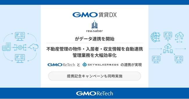 GMOインターネットグループのGMO ReTech株式会社(代表取締役社長:鈴木 明人 以下、GMO ReTech)は、2026年1月15日(木)より、GMO ReTechが提供する不動産管理会社向けDXプラットフォーム「GMO賃貸DX」と、SKYWALKER株式会社(代表取締役社長:福島 卓 以下、SKYWALKER)が提供する不動産管理システム「Realsaber」とのデータ連携を開始いたします。