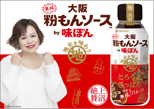 株式会社Mizkan (本社:愛知県半田市、代表取締役社長兼CEO:吉永 智征、以下:ミツカン)は2026年2月18日(水)から関西エリア限定で、「大阪無限粉もんソース(TM)by味ぽん(R)」を新発売いたします。ぽん酢ベースにとろみやスパイスを加え、大阪の粉もんにしっかり絡む味に仕立てました。関西の著名人、上沼恵美子さんも「お好み焼きが私にかけてって言うてるわー」と絶賛。粉もん好きの皆さまが飽きずに楽しめる新感覚ソースです。