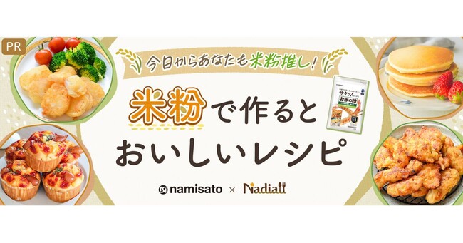 Nadia株式会社(東京都港区/代表取締役社長 葛城嘉紀 以下「Nadia」)と株式会社波里(栃木県佐野市/代表取締役社長 藤波孝幸 以下「波里」)がタイアップし、「お米の粉 お料理自慢の薄力粉」の認知・消費拡大を目的に、特別企画ページ【米粉で作るとおいしいレシピ】を季節ごとに更新したします。