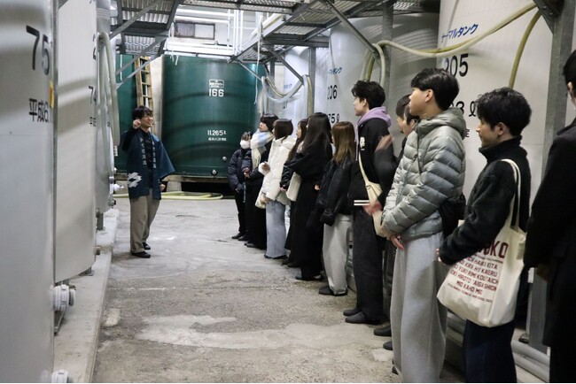 学生たちは、「原料や製造工程へのこだわり」「安全・品質管理の考え方」「観光資源としての酒蔵の役割」などについて理解を深め、日本酒づくりが「製造業」であると同時に、「文化」や「観光」とも深く関わっていることを実感していました。