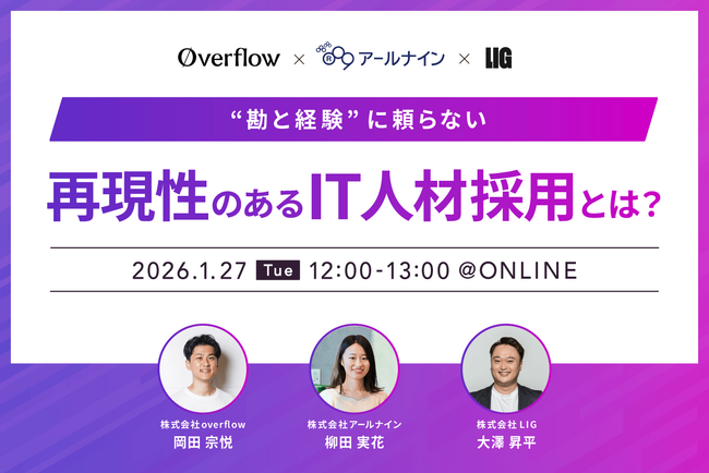 「“勘と経験”に頼らない、再現性のあるIT人材採用とは?」を2026年1月27日(火)にライブ配信、1月28日(水)、29日(木)にアーカイブ配信します。