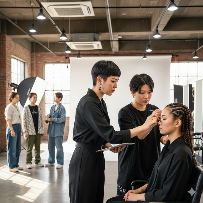 - 広告・CM・雑誌撮影現場でのヘアメイク業務