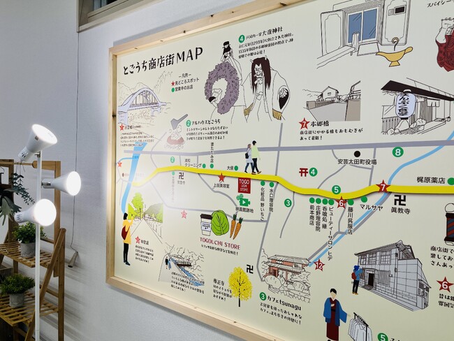 オリジナルのとごうち商店街MAP店内に設置した、とごうち商店街の地図。