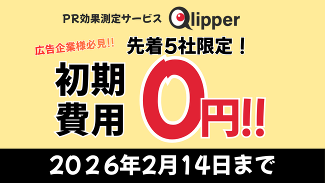 【2026/2/14まで】先着5社限定!PR効果測定サービス「Qlipper」初期費用"0円"キャンペーン開催!