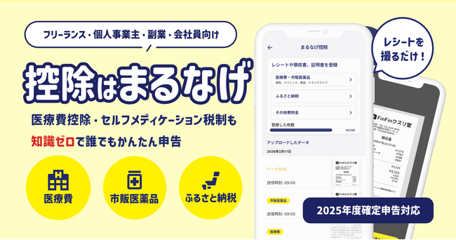業界初*、スマホで撮るだけ「まるなげ控除」機能が登場。フリーランス/個人事業主向けスマホ会計アプリ『FinFin』が2025年分確定申告に対応