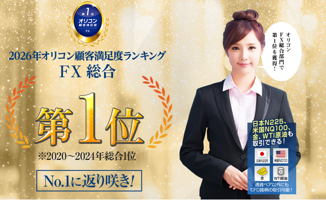 さらに、2026年 オリコン顧客満足度(R)ランキング 専門家評価 FX 総合 第1位を獲得しました。