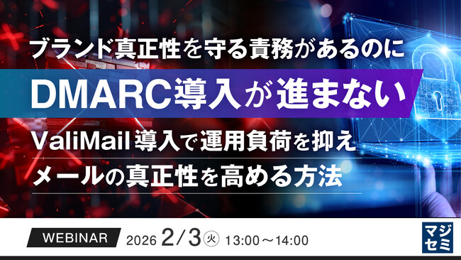 マジセミ株式会社は「ブランド真正性を守る責務があるのにDMARC導入が進まない」というテーマのウェビナーを開催します。