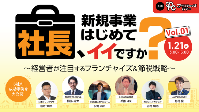 株式会社LeaguEは、日本FCファンド企画で6社共催オンラインFCツアー『1000万円以下で節税に活用できる投資型FC事業』を2026年1月21日(水)13時から開催いたします。