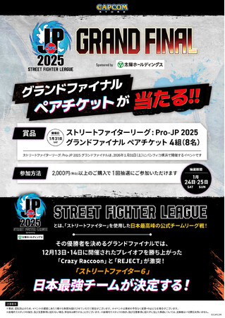 カプコンストアトーキョーで、1月24日(土)、25日(日)の2日間、1月31日(土)パシフィコ横浜で開催される「ストリートファイターリーグ: Pro-JP 2025 グランドファイナル2025」のペアチケット(1組2名様分)を抽選で4組にプレゼントするキャンペーンを開催します!