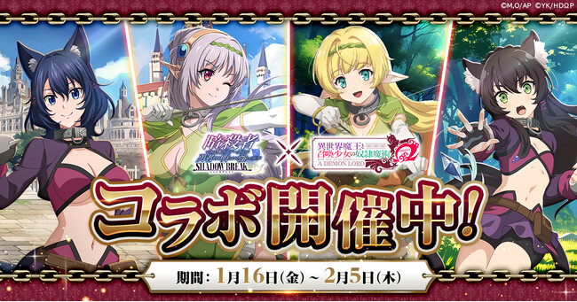 - 「暗殺者である俺のステータスが勇者よりも明らかに強いのだが シャドウブレイク」にてアニメ「異世界魔王と召喚少女の奴隷魔術Ω」コラボが本日より開催!01/16 11:00