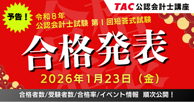 【公認会計士試験 短答式試験合格発表!】最新の情報は1/23(金)にTACでチェック!