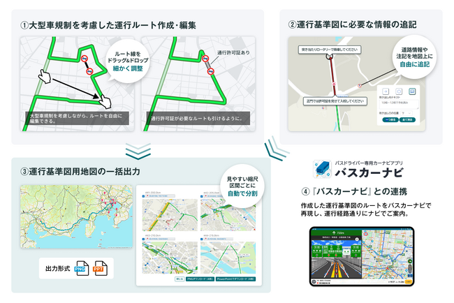 ~手作業の大部分を自動化。大型車規制ルートの自動出力と『バスカーナビ』連携で、法令遵守と業務効率化を両立~