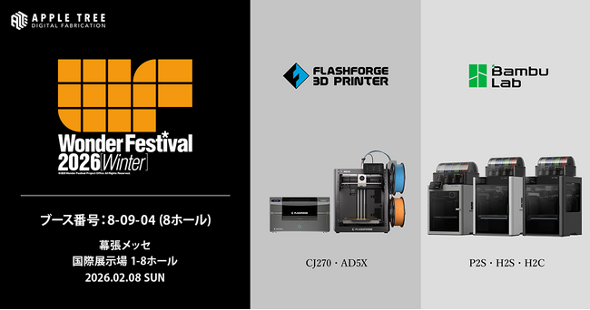 APPLE TREE株式会社(所在地:大阪府大阪市/代表取締役社長:朴秀明)は、2026年2月8日(日)に幕張メッセで開催される、世界最大級の造形・フィギュアイベント 「ワンダーフェスティバル2026[冬]」 に出展いたします。
