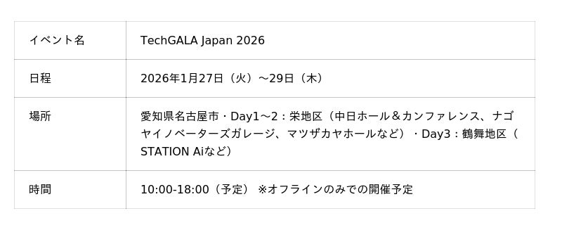 - 「TechGALA Japan 2026」スポンサーを紹介!01/16 12:00