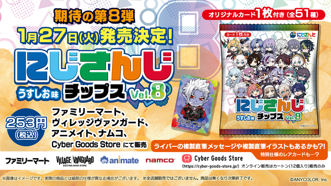 株式会社サイバーエージェント(本社:東京都渋谷区、代表取締役:山内隆裕、東証プライム市場:証券コード4751)は、人気VTuberグループ「にじさんじ」より、オリジナルカード付き『にじさんじチップスvol.8 うすしお味』を2026年1月27日(火)より発売することを決定いたしました。