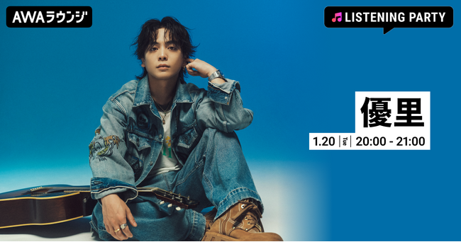 AWA株式会社(本社:東京都港区、代表取締役CEO:冨樫晃己)が運営する、サブスクリプション型(定額制)音楽ストリーミングサービス「AWA(アワ)」は、2026年1月20日(火) 20:00~21:00にて、無料で誰でも参加できるオンライン空間「AWAラウンジ」で、優里の特集リスニングパーティーを開催いたします。