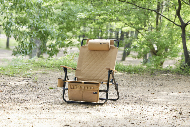 従来のカラーに加えTAN/OLIVE/COYOTE/CHARCOALをラインナップし、全5色展開へ拡充。3段階リクライニングで焚き火から読書、星空鑑賞にまで適した角度を選べるほか、断熱ウレタン入りの着脱式ストレージバッグ、キルティング座面、難燃生地など、くつろぎと実用性を両立しています。