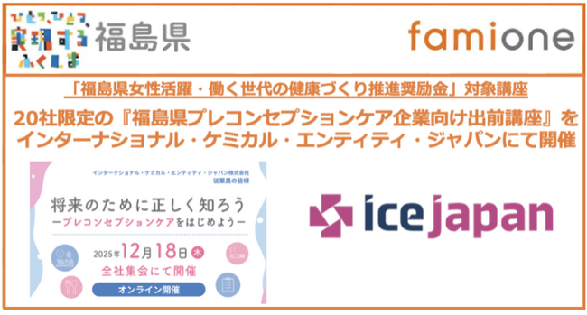「子どもを願うすべての人によりそい 幸せな人生を歩める社会をつくる」をビジョンに掲げ、法人の従業員向け福利厚生や自治体の住民向け支援を行うヘルスケアサポートサービス「ファミワン」 https://famione.com/benefit/ などを展開する株式会社ファミワン(本社:東京都渋谷区、代表取締役:石川勇介)は、インターナショナル・ケミカル・エンティティ・ジャパン株式会社(代表取締役社長:カイラッシュディープ シャルマー博士、以下「ICEジャパン」)の全社集会にてプレコンセプションケアをテーマとした出前講座を12月18日に開催しました。