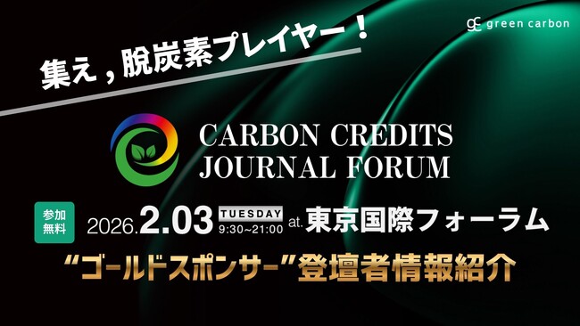 ネイチャーベースのカーボンクレジット創出・販売事業を展開するGreen Carbon株式会社(代表取締役:大北潤、以下Green Carbon(グリーンカーボン))は、国内最大級のカーボンクレジット特化フォーラム「Carbon Credits Journal Forum(以下、本Forum)」を、2026年2月3日(火)に東京国際フォーラムB7(有楽町駅直結)にて開催します。国内外の脱炭素主要プレイヤー500名以上が一堂に会し、カーボンクレジットの未来を語り合う場を提供します。今回は、本Forumのゴールドスポンサー企業の登壇者情報を紹介します。今後とも豪華登壇者様の続報をお知らせしますので、楽しみにお待ちください。また、スタンダードブース残り数枠限りとなりますが、本Forum内でブース出展を希望する企業様を募集します。