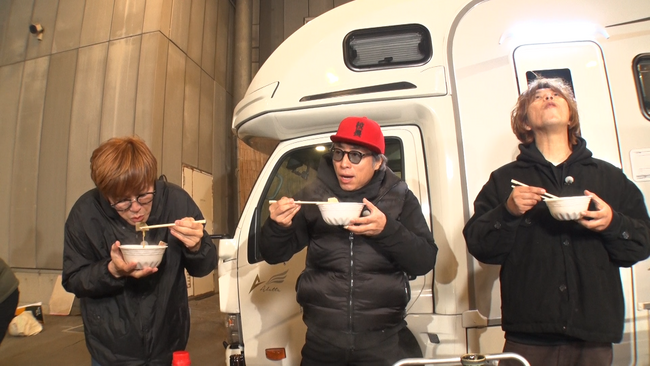 キャンピングカーのアレッタ(アスモーター ナッツ金沢)に、「出張輪島朝市」で買い付けた食材を積み込み、今も仮設住宅が立ち並ぶ輪島キリコ会館を訪れた一行。地元の方にも協力してもらい、さっそくいしる鍋をつくると、そのおいしさに淳は「いしる、すごいな!」と仰天します。