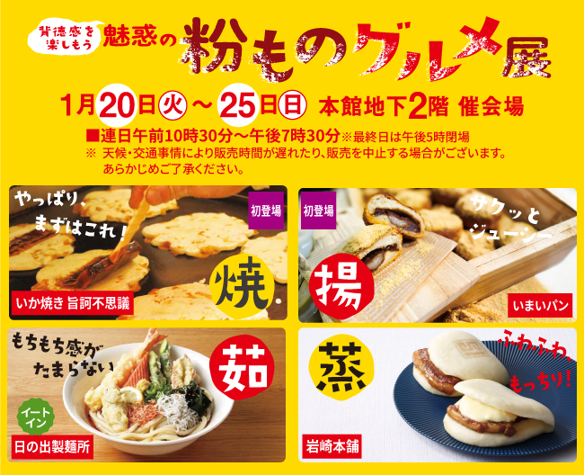 柏高島屋では第2回目となる「背徳感を楽しもう 魅惑の粉ものグルメ展」を開催いたします。